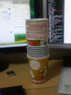 これがくまたそのインスタントコーヒーカップタワーだ。作業中は常に飲んでいた。